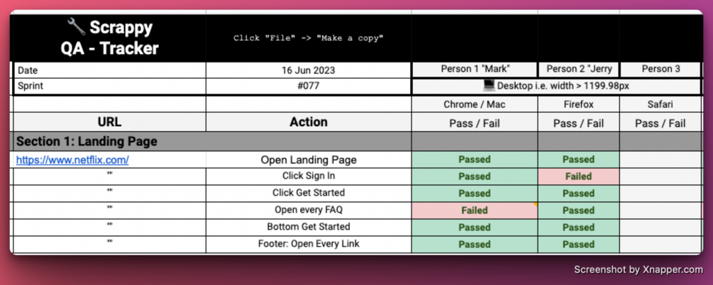 - Collaborative: The Google Sheet can be shared with your team, allowing everyone to contribute to the QA testing process and ensuring that nothing is overlooked.